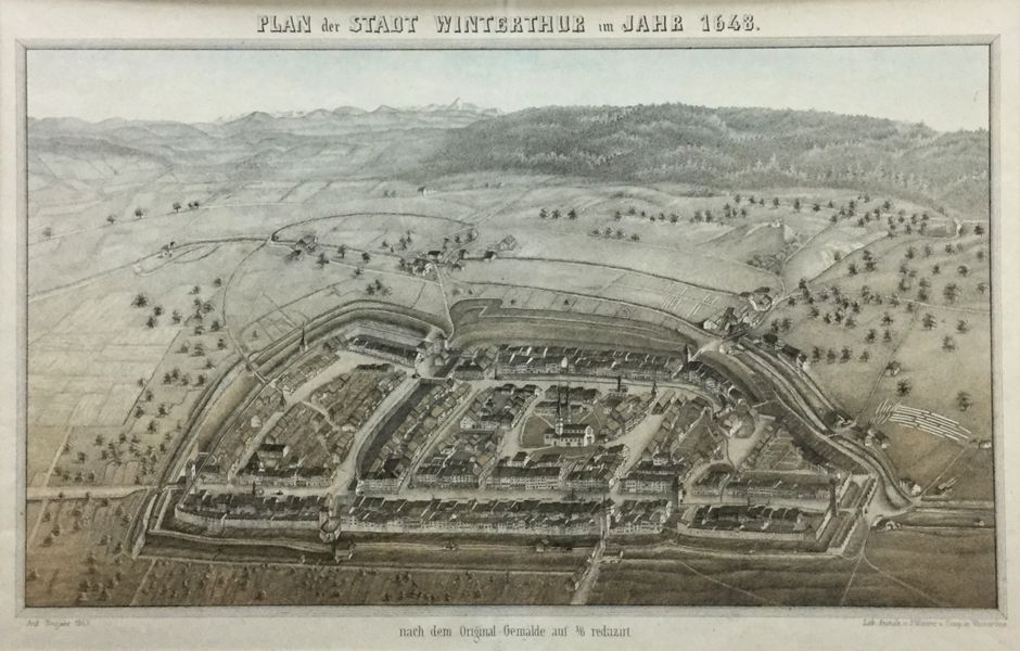 Plan der Stadt Winterthur nach Original-Gemälde 1648 1/6 reduziert